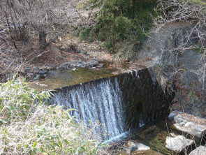 本堰堤、副堰堤からなる重力式堰堤(間地石の谷積み)で、現在も砂防機能を果たしています。