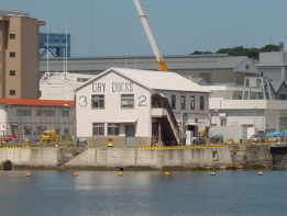 | 「DRY DOCKS 3 2」の表示・・・ この建物の両側にドライドック2号、3号 があります。 |
