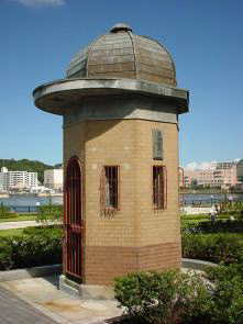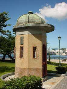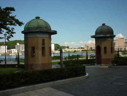 旧・日本海軍横須賀軍港の表門(衛兵詰所)で、八角の衛兵ボックスにはそれぞれ「逸見上陸場」「軍港逸見門」の文字が掲げられています。屋根は銅板葺きのドーム型で本体は鉄筋コンクリート造の八角形で外壁はタイル張りです。
