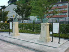 | 旧・横須賀製鉄所を望むヴェルニー公園 にヴェルニーと小栗忠順の胸像があります。 |