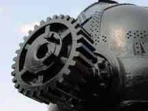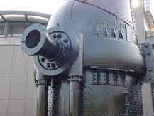 上の転炉の写真からわかるように、左が傾動軸を回転させるための歯車で、右の写真は傾動軸がパイプになっていて、転炉の下部にある羽口へパイプがつながっており、ここを溶銑をかくはん(攪拌)するための窒素ガスが通っていきます。
