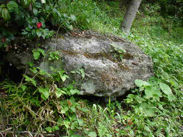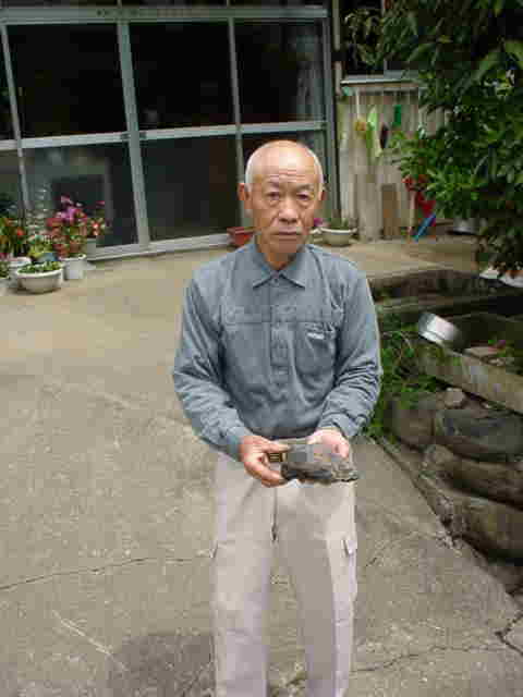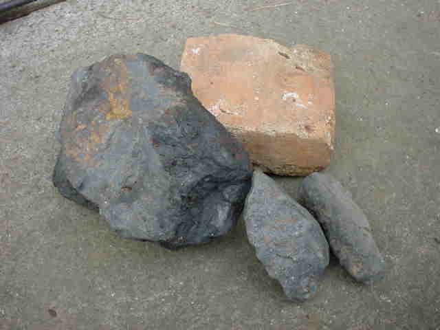 | 旧・製鉄所跡に現在お住まいの中沢喜一さんにいただいた旧・中小坂鉄山の鉄鉱石と煉瓦 | 焙焼炉跡 | |