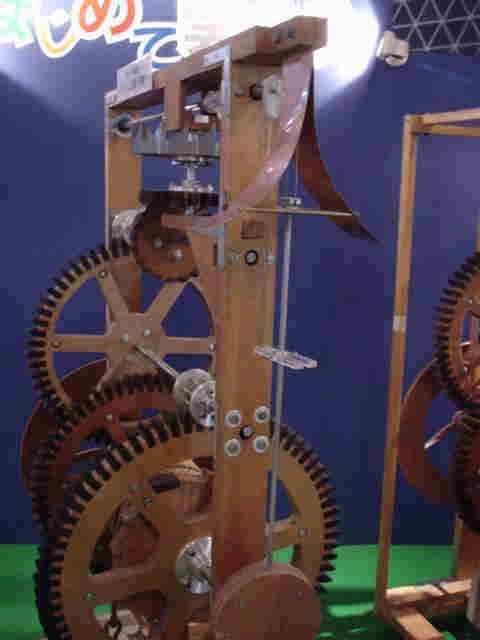 1658年にオランダのホイヘンスによって考案された初めての振り子時計です。振り子の等時性は1583年にイタリアのガリレオ・ガリレイによって発見されました。それまで機械時計に用いられていた「棒てんぷ」に代わって、振り子の運動で冠歯車の回転を一定にしています。振り子の長さを変えることによって時間の調整が可能です。振り子時計は機械時計の1日の誤差を10秒ほどにすることを可能にして機械時計がようやく実用的なものになりました。(棒てんぷ時計は1日で500〜1000秒の誤差があります。)