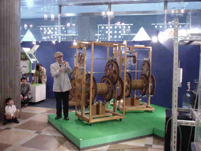 千葉工業大学の石川研究室・白井研究室が25年間にわたって製作してきた時計、約20点が逓信総合博物館で展示(2000年4月28日〜5月14日)されました。開催期間中の9日間に限り、白井靖幸先生(千葉工業大学工学部精密機械工学科)、石川隆三郎先生(千葉工業大学人文系)により、これらの時計について実演と説明が行われました。