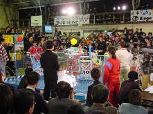 | 1年生はギャラリーからも観戦 | アイディア対決!・・・・ほんとうにユニークなロボットが並びました | |