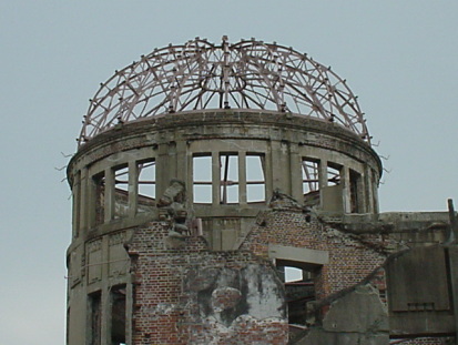 旧・広島県産業奨励館は、爆心地の北西約160mにあったため、建物の屋根や床はすべて破壊され、壁も1階の上端以上の大部分が倒壊しました。爆風がほぼ真上から建物に作用したため、建物の中心部は倒壊を免れました。
