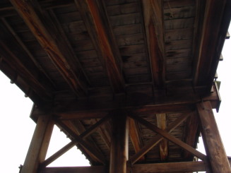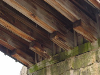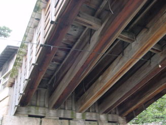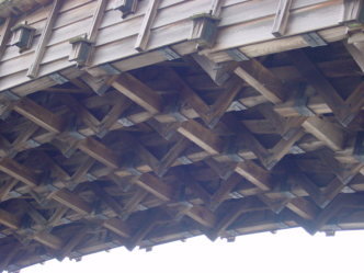 桁材と梁材は、さらに鞍木(V字形に組んであります)と肋木(板状)で補強されています。