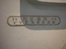 銘板から、この竪削盤はオランダ、ロッテルダムのFyenoordにあるNSBM(ネーデルランゼ・ストームボート・マーツハッペイ Nederlandsche Stoomboot Maatschappij)で1856年に製造されたことを示しています。当時、竪削盤は「撞断機盤」と呼んでいました。