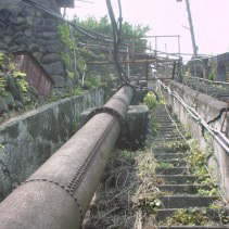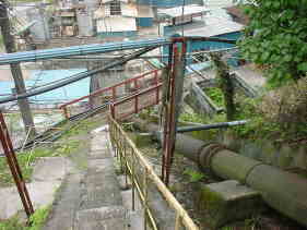 この水力発電所の水圧鉄管があった付近は、明治時代に西毛電気(株)が川久保発電所の水圧鉄管と発電所を建設した場所に隣接しています。どちらも霧積川から取水していました。
