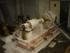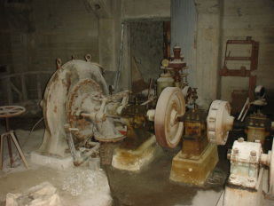 ペルトン水車の駆動力はベルトによって伝達され、工場の動力に使われていました。