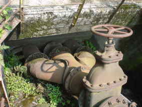 1955(昭和30)年の刻印がある水圧鉄管のバルブ