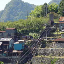 白石工業の工場レイアウトには1つの共通点があります。創業者の白石恒二は、工場の設計に際して、いかにすれば人力の無駄をなくし、大量生産ができ、コストが安くなるか、といった問題を中心に検討しました。その結果、自然の重力を利用して、原料と動力を自給する生産方式を考案しました。傾斜地に工場を立地することによって、水流の落差を水力発電と粉砕機の動力に利用し、山肌の傾斜を階段状に利用して、石灰石の焼成、化合、水簸、乾燥、粉砕、出荷までの工程を一貫して行うことができるようにしたものでした。一見すると水力発電所の構造に似ているこの工場レイアウトは、白石恒二が電気技師でもあったためと言われています。