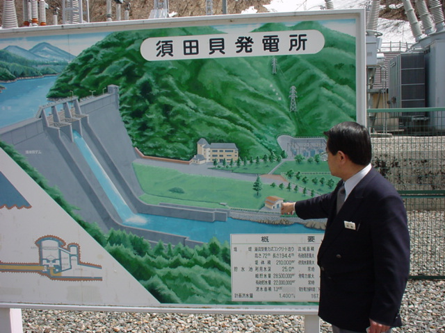須田貝ダムからの有効落差77m、水量は2台で65立方メートル毎秒(1秒間にドラム缶325本分の水)、出力47800キロワット(2台)、毎分250回転