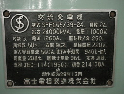 2基の発電機で、出力48000キロボルトアンペア、電圧11000ボルト、周波数50ヘルツ