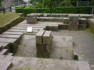 反射炉に隣接して鋳台(いだい)のあった場所があります。地下の下には鋳台の遺構が埋もれています。鋳台に大砲の鋳型が置かれ、出湯口から溶け出た銑鉄を鋳型に導き、大砲を鋳造しました。そのあと鋳型から大砲を取り出し、近くにあった鑚開台(さんかいだい)で水車動力を用いて砲身の中ぐりを行いました。