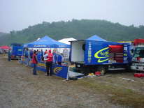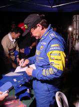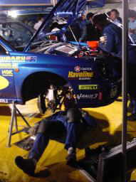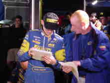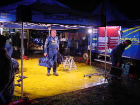 実は気がついたらスバルチームのサービス・ピットの中に入ってしまい(報道関係者以外は入れないのですが・・・(^^;))こんなに近くでサービスの様子を見ることができてしまいました。目の前を何度も通り過ぎるボーン選手に声をかけたら、サインをしてくれました。(^^)ちょっと古いのですがボーン選手にとっては記念碑的な写真を持っていってよかった!まさかこうなるとは期待してなかったのですが、ひょっとしたらと思って持っていったのです・・・準備がいいでしょう(^^;)