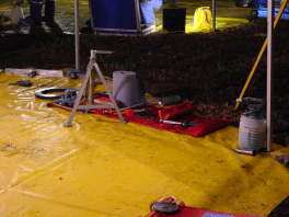 群馬県富岡市の「もみじ平総合公園」にはサービスパークが設置され、スペシャルステージを走行し終わったラリー車が整備や修理のために集まってきます。ここでは各ラリーチームのメカニックによるサービスを見ることができました。