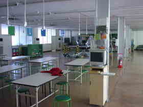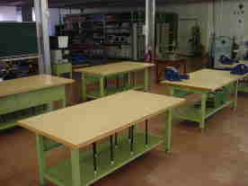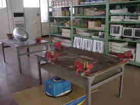 中学校技術科の教員養成のために、学習指導技術の基礎的研究ならびに学習展開に関する指導法の実践的開発・研究を行っています。特に「ものづくり」に関する技術の基礎を実践的に体験させ、指導技術の定着を図ることを目的とした施設です。中学校の技術教室を模しているので、現職の教員の研修に活用できる施設となっています。