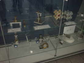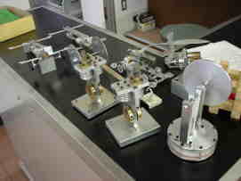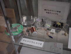ものづくり教室などで製作された「ねじ」や「スターリング・エンジン」、「ゲルマニウム・ラジオ(鉱石ラジオ)」などが参考品として展示されていました。