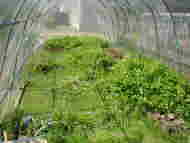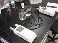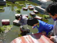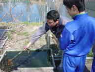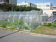 群馬高専の合併処理浄化槽で処理された生活排水の処理水を使って、ビニールハウス内ではセリが栽培されています。これも処理水をさらに浄化するための実験です。
