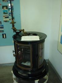 レンズ部分は重いため、少ない力で回転運動させることができるように、レンズ部分を水銀の上に浮かせてモーター(電動機)で回転させています。