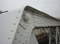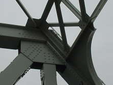 アングル材とプレート材で橋梁の弦材を組み立てる構造となっています。