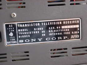 このテレビにはトランジスタが25個、ダイオードが20個使われていると表示されています。