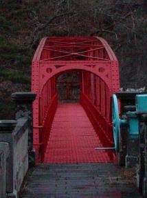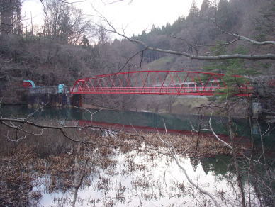 本堰堤の管理用「堤上架橋」は「曲弦ワーレン・トラス橋」(長さ30.6m)で、