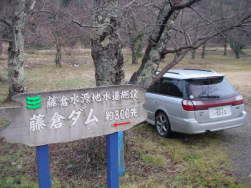 「沈殿地」跡地前に駐車スペースがあり、藤倉水源地堰堤までは徒歩で約300m