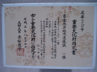 「藤倉水源地水道施設」は、秋田市内への水道用水・防火用水を供給するための水道施設として、1903(明治36)年10月に着工し、1911(明治44)年8月に竣工しました。明治期の大規模な事業で国の補助を受けることなく行われたものはほとんどなく、秋田市が独自で行なった「藤倉水源地水道施設」の建設事業は、こうした面からも貴重なものです。1973(昭和48)年9月に、秋田市の水道用水源が「藤倉水源地水道施設」のある旭川から雄物川に変更され、藤倉ダムからの取水が停止した際に、ダム本体が老朽化したこともあり建設省からダム撤去が求められましたが、秋田市水道局などによる歴史的なダムを市民のために存置すべきであるというはたらきかけによって貴重な技術遺産が守られてきました。1993(平成 5)年8月17日、国重要文化財に指定されました。「近代化遺産」としては、「碓氷峠鉄道施設」(群馬県碓氷郡松井田町)とともに全国で初めて国の重要文化財となりました。