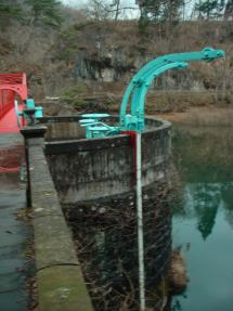 堰堤南側には取水設備のある半円形突出部「バルブ塔」があります。