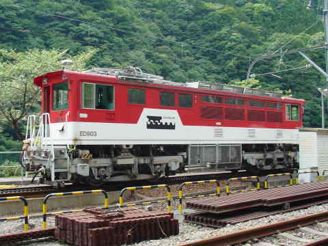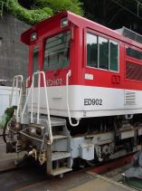 「アプトいちしろ」駅〜「長島ダム」駅間のアプト区間で補機を務めるために1990(平成元)年に日立製作所で製造されたアプト式電気機関車です。自重は56tあります。出力は走行用に53kWの電動機4基、ラック歯車用に175kW電動機2基のモーターを搭載しています。ED90形電気機関車2両の重連で12両まで牽引することができます。