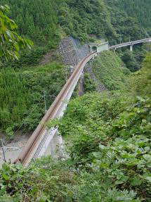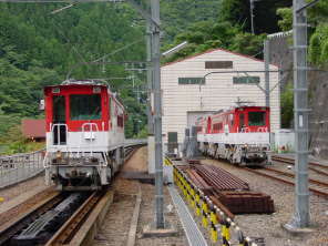 工事は堂平まで17.1kmを延長し、昭和29(1954)年に完成。総工事費25億5千万円を投入する難工事であった。旧専用鉄道の関係上、車輌規定は最大幅1850mm、最大高2700mmとなっている。なお、この時に新造された車輌は現在でも多くみられる。この専用鉄道は専用といいながら、沿線住民のために客車を増結し、井川−千頭間を無料で輸送した。