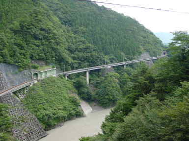 存続か廃止かの議論がなされたが、その後昭和53(1978)年に路線存続が決定、昭和57(1982)年に水没区間である川根市代(現在のアプトいちしろ付近)−川根長島(現在の接岨峡温泉)間を付け替え、アプト式の区間を作ることを決定、平成2(1990)年10月2日、市代−ダム堰堤のアプト区間1.5kmを含む新線区間が開業した。