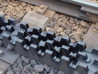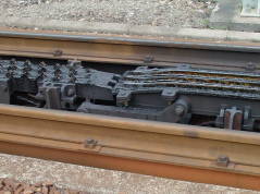 ラックレール(歯軌条)に噛み合う機関車のピニオン(歯動輪)
