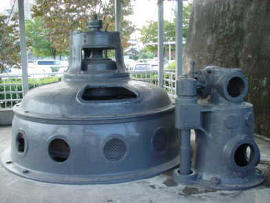 この2基のタービンは、1924(大正13)年にドイツのフォイト会社製320馬力のタービンと、それに直結した216KW発電機1台に取り替えられました。