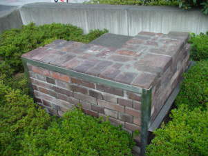 ここにある門柱状の煉瓦積遺構は桐生産の煉瓦で、水路を潜り、発電所と工場をつなぐトンネルの支えとして造られたものです。桐生総合厚生病院の改築工事中に、発電所跡のすぐ脇で煉瓦積の遺構が発見され、1988(昭和63)年に発掘調査が実施されました。この並立した門柱状の煉瓦積は、発電所に関係する日本織物株式会社創立当初の遺構で、使用されている煉瓦は、工場建設のために桐生煉瓦製造会社において製造されたものです。
