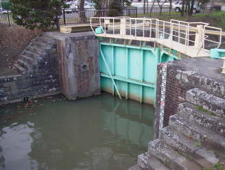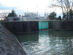 閘室・・・「旧・北上川」側の水門と「北上運河」側の水門間は約50m