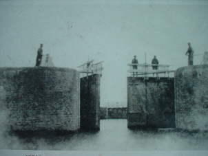 Doorn)は大久保利通の命令によって野蒜築港計画に関する現地調査を行い、鳴瀬川河口の野蒜を東北開発の拠点となる築港の適地として報告しました。藩政時代から内陸水運の盛んな地域であった北上川(現在の旧北上川)と野蒜港を内陸水路で連結するために、水深の浅い石巻の河口港や、天候に大きく左右される外洋を通らず安全に航行できる内陸水路として「北上運河」が開削されました。「北上運河」と北上川(現在の旧北上川)の分岐点に、水位調節と船舶の通過のために設けられた閘門が「石井閘門」です。1878(明治11)年10月8日、蛇田村高屋敷(現在の石巻市水押)で起工式が行われ、内務省土木局長・石井省一郎(いしいしょういちろう)、オランダ人技術者(内務省雇長工師)ファン・ドールン(C.J.van