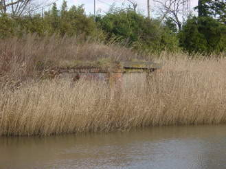新鳴瀬川の下流(北上運河との合流付近)に残る橋台