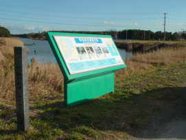 鳴瀬川と新鳴瀬川の分岐点付近には、「野蒜築港」と「旧・市街地」に関する案内板が設置されています。