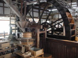 大間々(現在の大間々町大間々1165番地)の米穀水車材木製板商「野口商店」の野口金太郎が1910(明治43)年に建造した精米・製粉用の屋内型水車で1955(昭和30)年頃まで稼働していたものです。「野口水車」として知られ、周辺町村はもとより、足尾方面の人々にも精米や製粉のために活用されていました。