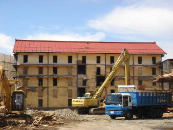 下諏訪倉庫の旧・繭倉庫は、2003年末に解体撤去される予定です。東海地震の警戒地域でもあり、木骨の土蔵という構造そのものや老朽化によって、旧・繭倉庫は耐震性の面で問題があり、内陸の倉庫業が衰退している中で、個人企業で旧・繭倉庫を維持管理していくことが困難であるということです。「どんな形でも残る方法があれば良いのだが。今後、失われる地域の近代産業遺産をどう残していくか、地域にもっと関心を持ってほしい。今回のことが、見直しのきかっけとなってほしい・・・」(三井社長)