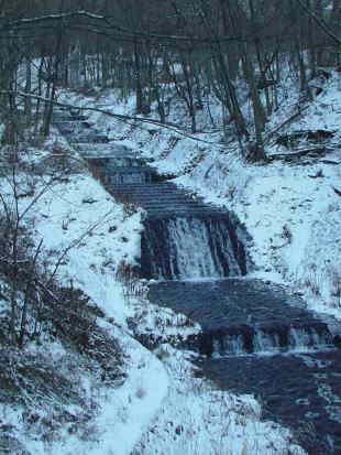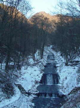 延長約141m(落差約23m)の間に19段の階段状の「空石三面張水路」があります。