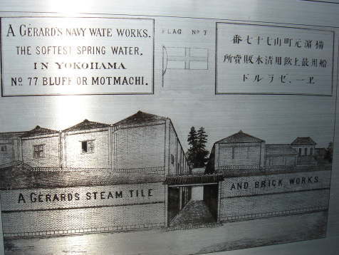 アルフレッド・ジェラールは、山手の湧水を利用して船舶給水業を営む一方で、「ふらんす瓦」「赤煉瓦・有孔煉瓦」「陶管」「タイル」の製造を手がけ、その工場は、「煉瓦屋敷」もしくは「水屋敷」と呼ばれていました。