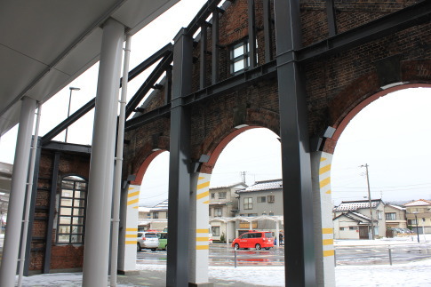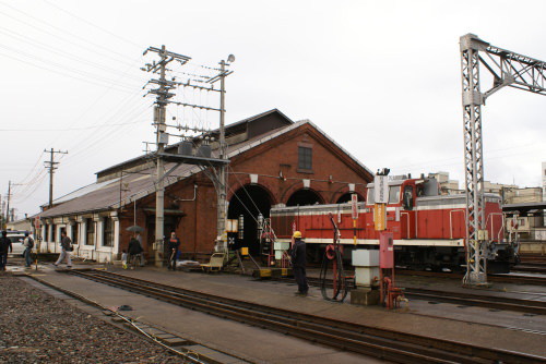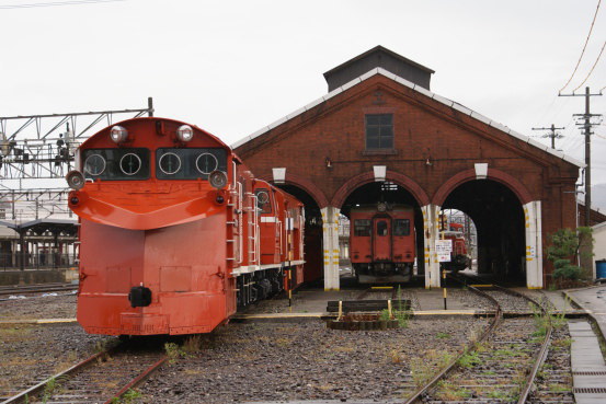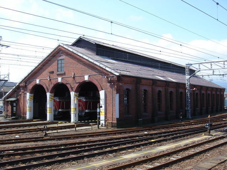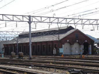 | 東側(直江津側) 煉瓦造の機関車庫は、現在もディーゼル機関車の機関車庫として使用されています。 |