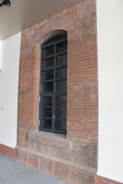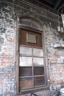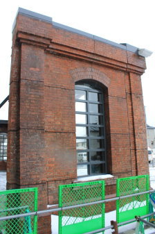 | 蒸気機関車時代の機関車庫の情景 | 機関車庫の壁面と窓の一部も保存されています。 |