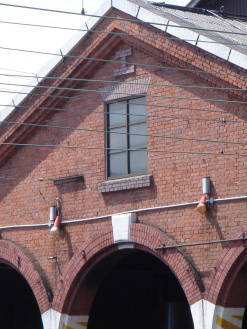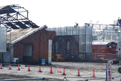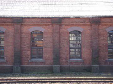 | JR北陸本線・糸魚川駅構内にあった1912(大正元)年竣工の煉瓦造機関車庫(検修庫) 2005年5月14日 撮影 |