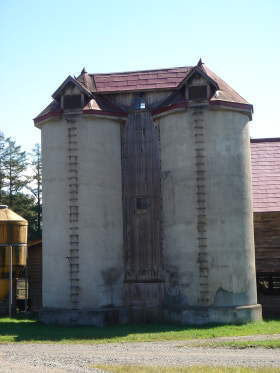 | 二階建て、切妻造の巨大牛舎。多少の改築や機械設備の導入がありますが、現在でもほとんど外観を変えずに使用しています。 |