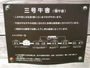| 三号牛舎(犢(とく)牛舎) No.3 Cowshed(calf barn) since 1935 建築年代 1935(昭和10)年 規模 1023m2 用途 育成牛(子牛)用牛舎 使用年代 1935(昭和10)年〜現在 国登録有形文化財 第03-0005号 1996(平成8)年12月登録 |